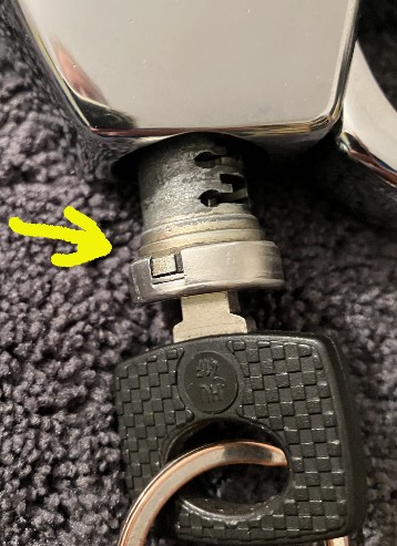 Bild links : fehlende Abdichtung am Schliesszylinder
